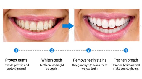 The Teeth Whitening Essence is formulated to erase stains and whiten your teeth without damaging the enamel and gums.