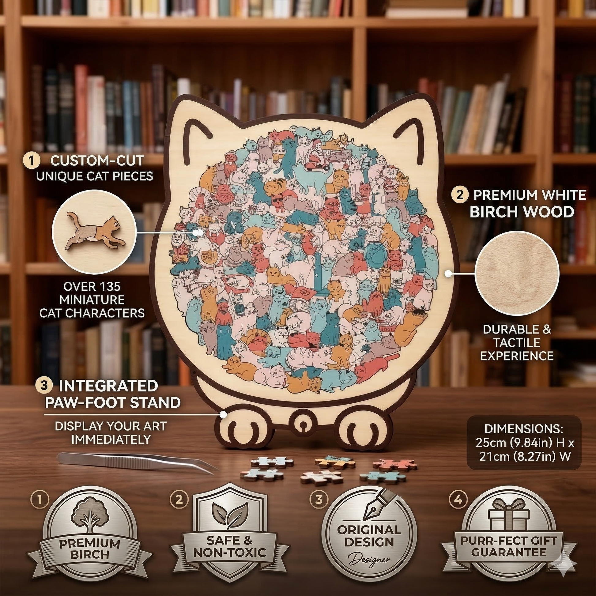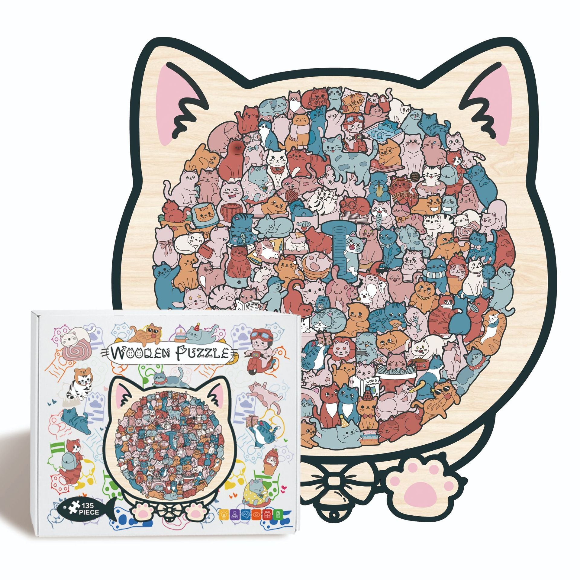 135-Piece Morandi-Birch Wood Cat Puzzle