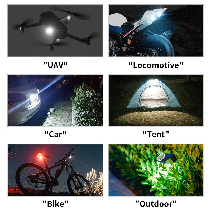 - 【Airplane Strobe Lights】LED airplane strobe lights are a craze for outdoor sports enthusiasts. The new appearance, the coolest and most exciting riding style, and the colorful lights have attracted the attention of many onlookers.